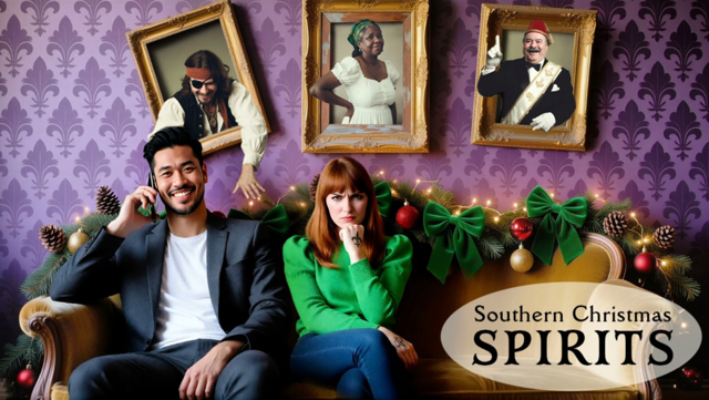 KAT (30s), the big-hearted, slightly chaotic co-owner of a creaky Victorian B&B in New Orleans, is holding her inherited family home together with duct tape, grit, and love, flipping omelets, fixing toilets, and clinging to the last physical link to her late parents, while hiding one inconvenient truth: she can see and hear the dead, and the hotel’s unruly resident ghosts are scaring off guests just as a loan comes due on Christmas Eve. With foreclosure looming, her relentlessly pragmatic sister LOTTIE (30s) pushes to sell and enlists WEN (30s), a handsome, emotionally frostbitten real-estate agent whose career is built on turning historic homes into rubble, the exact opposite of everything Kat believes in. Refusing to give up without a fight, Kat hatches a last-ditch plan to partner with her ghosts to launch haunted tours, though corralling them proves harder than expected: NELSON, a pompous 1940s Freemason who mansplains from beyond the grave; HENRI, a flirtatious French pirate who can’t keep his spectral hands to himself; and COCO, a sharp-tongued, formerly enslaved Caribbean woman whose presence, and absence, may hold the key to the house’s survival. As part of a tense compromise with Lottie, Kat agrees to list the house with Wen as a backup if the tours fail, forcing Kat and Wen into uneasy collaboration as they gather ghostly proof, hustle tourists through the French Quarter, and slowly discover that beneath their clashing values lies undeniable chemistry. As the tours gain traction, Wen begins to question the cost of his ambition, Kat learns to balance passion with practicality, and even Lottie softens, until sabotage by a rival attraction and a devastating discovery of Wen’s drawing showing the B&B replaced by a chain restaurant shatters Kat’s trust. With Christmas approaching and everything on the line, Kat must decide whether she’s been conned, whether love is worth the risk, and whether she can save both her family home and her future—living and dead alike.